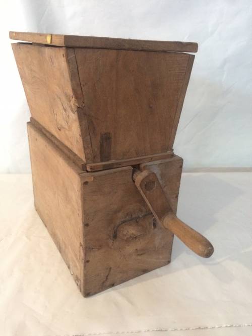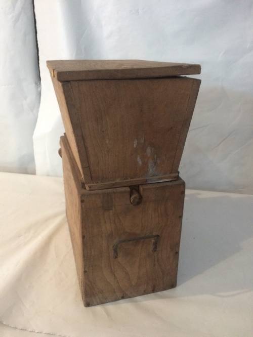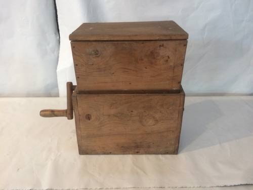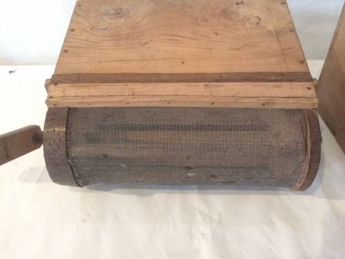 Les blutoirs se retrouvent souvent dans les moulins et sont généralement de grandes tailles et parfois actionnés par divers mécanismes. Ce petit blutoir au vu de sa taille est individuel et servait surtout aux personnes faisant leur propre pain.