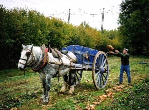 La charrette constitue dans ce domaine un très bon moyen de transport des matières, des céréales ou du foin par exemple. Elle est réalisée toujours de la même manière, c'est-à-dire un plateau et deux roues, la charrette peut être tirée par plusieurs animaux mais également par des hommes (on parle alors de charrette à bras). La charrette de cette collection était surtout utilisée avec un cheval en raison de l'espace laissé entre les deux barres latérales.