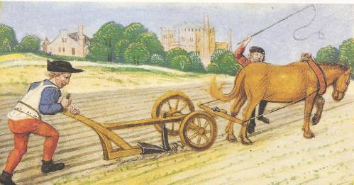 La charrue à roue s'est donc répandue entre le 10ème et le 13ème siècle, spécialisée dans les sols lourds. Mais cela restait un outil particulièrement cher qui sera remplacé par la mécanisation qui permet un travail plus rapide (les nouveaux outils mécaniques peuvent supporter de nombreux socs).