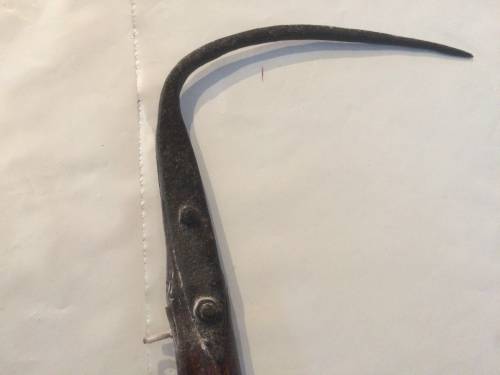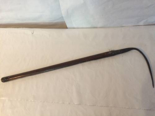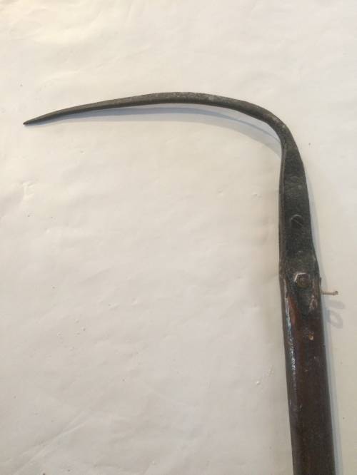 Ce crochet est utilisé en même temps que la sape, c'est un outil parfaitement complémentaire. La sape, utilisée pour les moissons et les céréales, est tenue d'une main et de l'autre le moissonneur tient un crochet de la main gauche servant à maintenir et ramasser les récoltes qui vont être coupées.