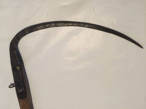 Ce crochet est utilisé en même temps que la sape, c'est un outil parfaitement complémentaire. La sape, utilisée pour les moissons et les céréales, est tenue d'une main et de l'autre le moissonneur tient un crochet de la main gauche servant à maintenir et ramasser les récoltes qui vont être coupées.