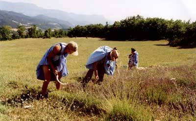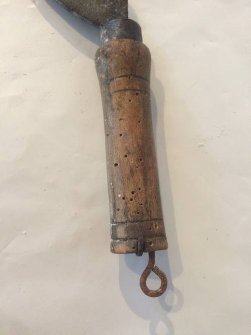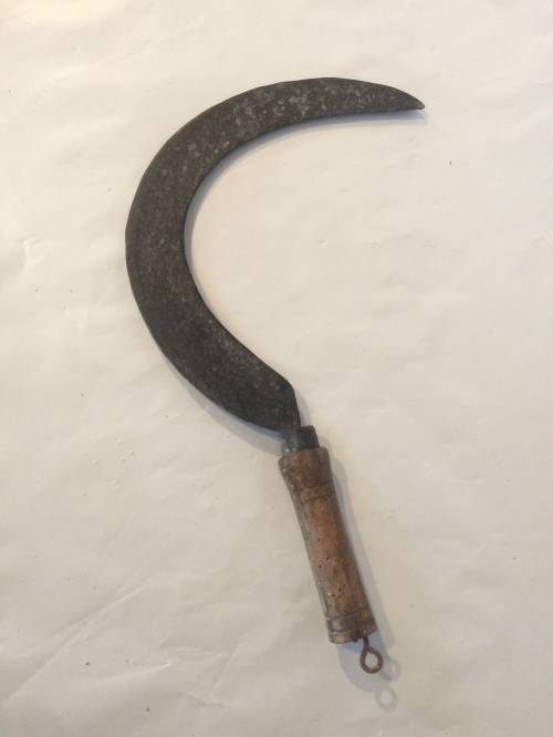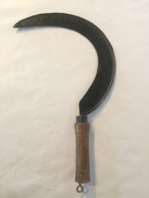 Son utilisation est liée aux moissons des végétaux : de la main droite le cultivateur tient la faucille et de la main gauche, il tient les herbes ou céréales devant être coupées. Des gants fabriqués en bois existent pour protéger la main qui est exposée au coup de la faucille.