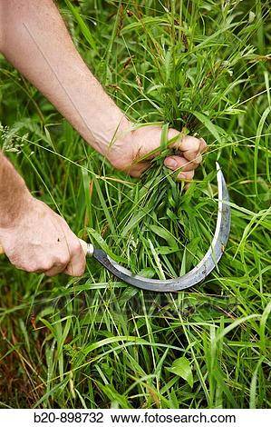 Son utilisation est liée aux moissons des végétaux : de la main droite le cultivateur tient la faucille et de la main gauche, il tient les herbes ou céréales devant être coupées. Des gants fabriqués en bois existent pour protéger la main tenant les végétaux.