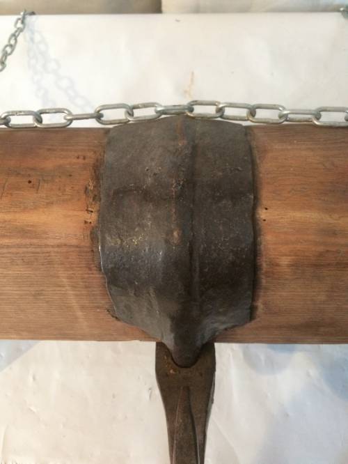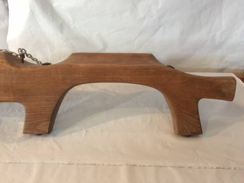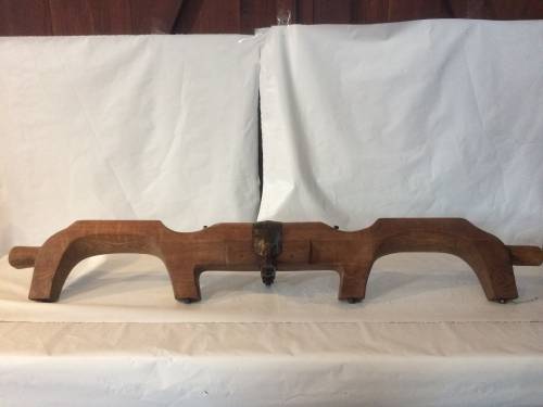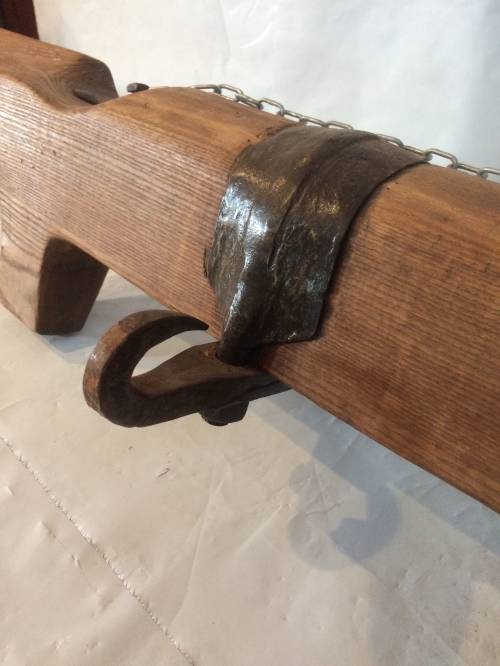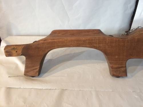 Le joug de boeuf est utilisé en agriculture, il sert à atteler les animaux : le plus souvent des bovins. Ils peuvent aussi servir à l'attelage d'autres animaux, des chevaux ou des ânes par exemple. Cet objet est fait pour deux boeufs ce qui est le cas le plus courant des jougs : on attèle les animaux pour travailler la terre. Pour labourer par exemple, la petite attache au centre sert à y fixer un chariot ou autre outil.