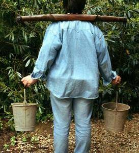 Ces objets sont encore utilisés dans plusieurs pays pour rapporter de l'eau, ils sont réalisés souvent avec de simples bâtons de bois auxquels sont attachées des ficelles.