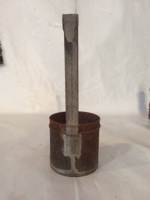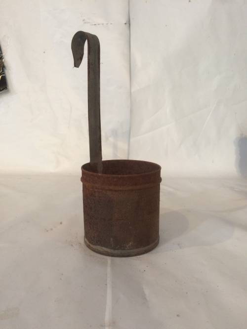 Ces petites mesures à lait, qui pouvaient avoir différentes formes, servaient au transfert du lait, du bidon à la biche, lorsque le paysan venait chercher du lait. Généralement réalisée en fer blanc ou en aluminium, la contenance était toujours indiquée par une inscription sur l'objet (dans le cas de cet objet, les traces d'usure et de rouille ont probablement effacé l'inscription).