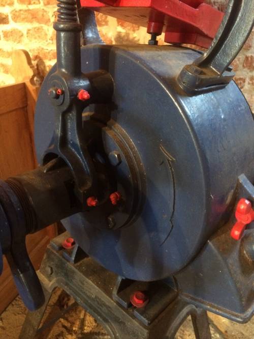 Le système de ce petit moulin est moins complexe que les plus gros mais fonctionne sur le même principe, on pense notamment aux deux meules : avec une meule dormante (la meule fixe) et l'autre en marche.
