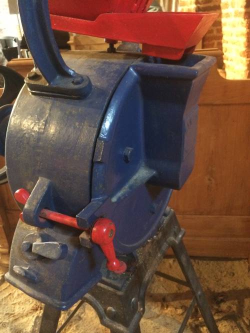 Ce petit moulin à farine fonctionne avec une meule, une meule est un objet permettant le broyage et le concassage de différentes graines. C'est un outil particulièrement utile pour la fabrication de la farine, du sucre par exemple.