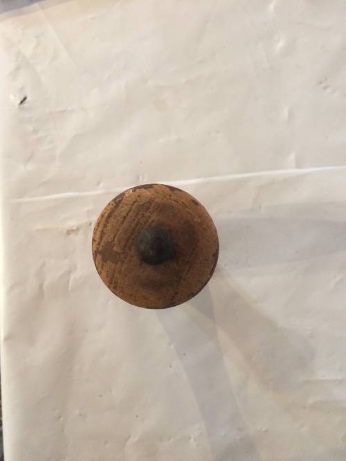 Au dessus de l'objet, un cercle est également gravé puis un couvercle surmonté d'un  petit embout (ressemblant à une petite boule) peint en noir.