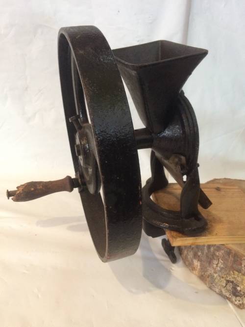 Il fontionne comme un moulin miniature, avec des meules faites en fonte. Avant cette invention, le broyage des matières se faisait avec un de mortier dans un récipient.