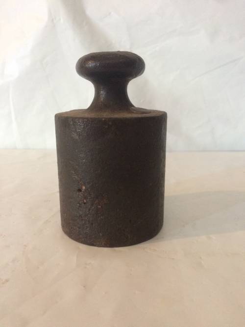 Ce poids est réalisé en laiton, ce type d'objet était utilisé sur des anciennes balances, elles avaient alors deux plateaux, les poids y étaient déposés pour de nombreuses transactions ou des pesées. En effet, ils servaient d'instrument de mesure grâce au poids inscrit sur ces objets (ils étaient appelés "poids de référence"), les mesures et pesées étaient faciles à entreprendre pour les commerçants.