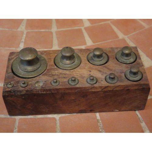 Ils étaient alors à destination de marchands, tels que des épiciers par exemple. Les poids sont généralement fabriqués en fonte, cuivre ou laiton. Les poids ont souvent des poinçons représentant des lettres et servant au fabricant (le maître balancier) à identifier leurs propres poids. Les poinçons sur ces objets cylindriques sont plutôt des inscriptions gravées sur le dessus. Parfois, l'État peut vérifier aussi ces objets et chaque année une lettre différente est apposée sur l'objet comme validation (ce n'est pas le cas de celui-ci qui ne comporte qu'un chiffre). Ils étaitent rangés dans des boites fabriquées spécialement pour les accueillir.