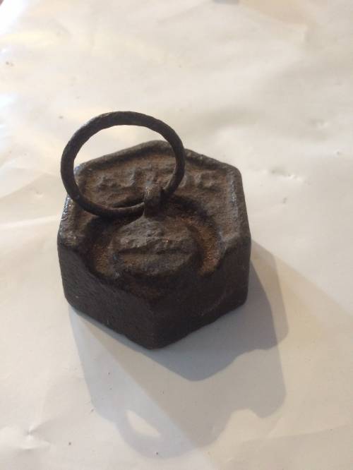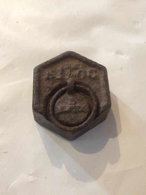 Ce poids est réalisé en fonte, ce type d'objet était utilisé sur des anciennes balances. Elles avaient alors deux plateaux, les poids y étaient déposés pour de nombreuses transactions ou pesées. En effet, ils servaient d'instrument de mesure grâce au poids inscrit sur l'objet : les mesures et pesées étaient faciles à entreprendre pour les commerçants.