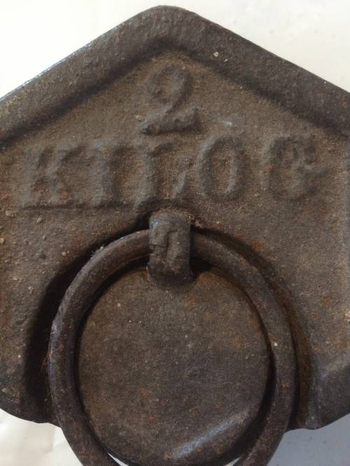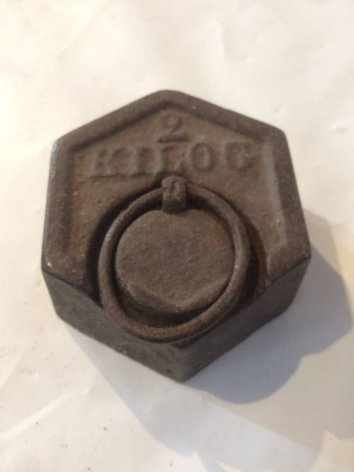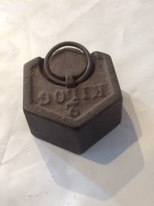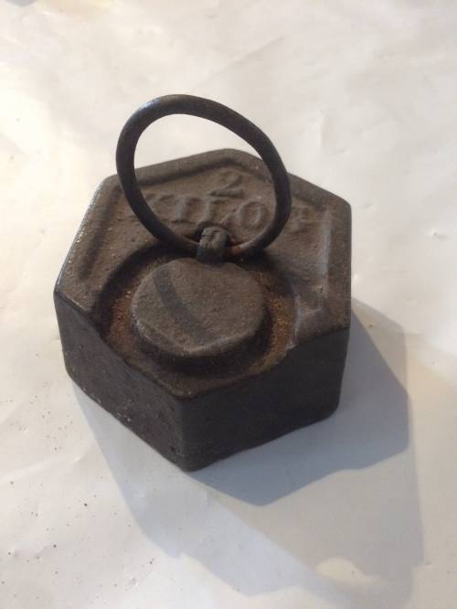 Ce poids est réalisé en fonte, ce type d'objet était utilisé sur des anciennes balances. Elles avaient alors deux plateaux, les poids y étaient déposés pour de nombreuses transactions ou pesées. En effet, ils servaient d'instrument de mesure grâce au poids inscrit sur l'objet : les mesures et pesées étaient faciles à entreprendre pour les commerçants.