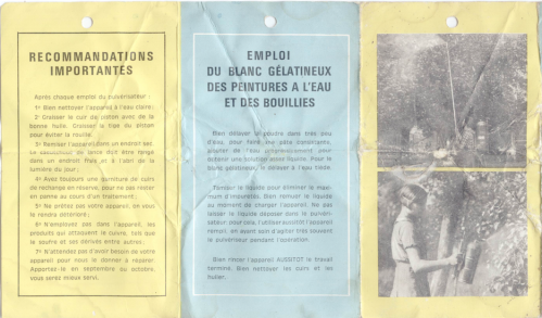 Celui-ci est utilisé à la main en le tenant par le tuyau métallique. D'autres appareils Muratori ont été conçus pour les maintenir dans le dos et faciliter son usage.