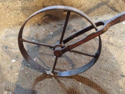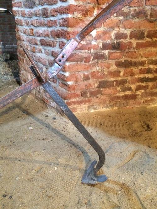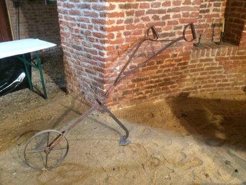 Cet outil agricole devait probablement servir au sarclage (en raison de la forme de sa lame). Le sarclage est un travail qui consiste à enlever les mauvaises herbes, ce travail se fait avec ce type de lame car il permet d'enlever les plantes sans retourner la terre. C'est un travail du sol en superficie car ces plantes dites adventices se multiplient rapidement.