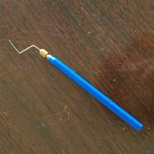 Outil indispensable au fileur pour enfiler les aiguilles quand le fil casse (même quand le métier est en marche sur les métiers 1S et 2S) et au navetteur pour extraire le fil du cocon.