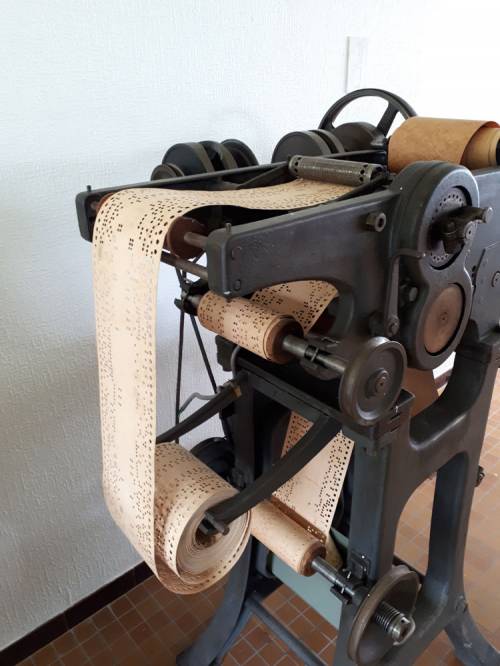 Le carton Jacquard d'origine est reproduit fidèlement par cette machine avec possibilité de reproduction horizontale (cols) ou verticale (chandelle).