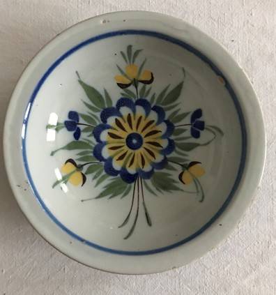 Ecuelle cul noir. Décor de bouquet , une fleur centrale entourée de 5 fleurettes.