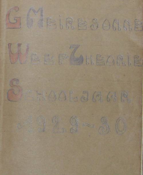 Cahier de théorie du tissage rédigé en néerlandais (”Weeftheorie”), appartenant à monsieur Meiresonne, élève durant l’année scolaire 1929-1930.