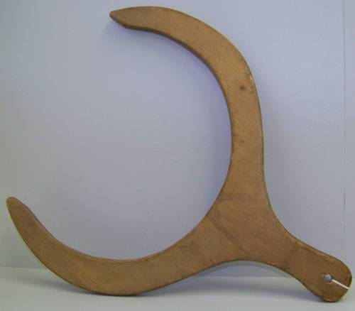 Gabarit en bois servant au mesurage de la contenance des bobines de ruban tissé ou ourdi.