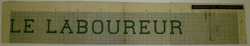 Dessin de mise en carte pour ruban jacquard comportant, en vert, jaune et noir sur fond blanc, l’inscription : “LE LABOUREUR”.