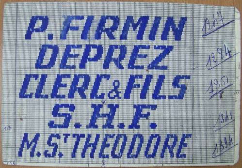 Mise en carte pour ruban jacquard comportant, sur 5 lignes, réalisées au crayon bleu, les inscriptions : “P. FIRMIN, DEPREZ, CLERC & FILS, S.H.F., M. S.t THEODORE”.