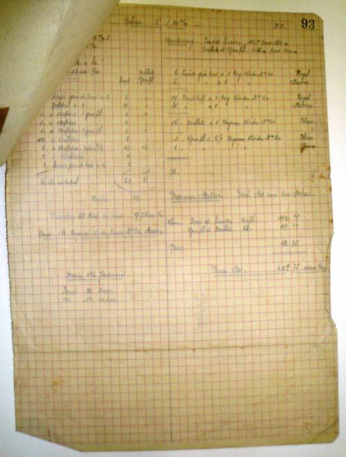 Annexés à la pièce principale, deux documents ont été épinglés, l’un reprenant, sous forme de gouache, le motif en couleurs, l’autre, les caractéristiques techniques complètes de la pièce à tisser (y compris ses variantes).