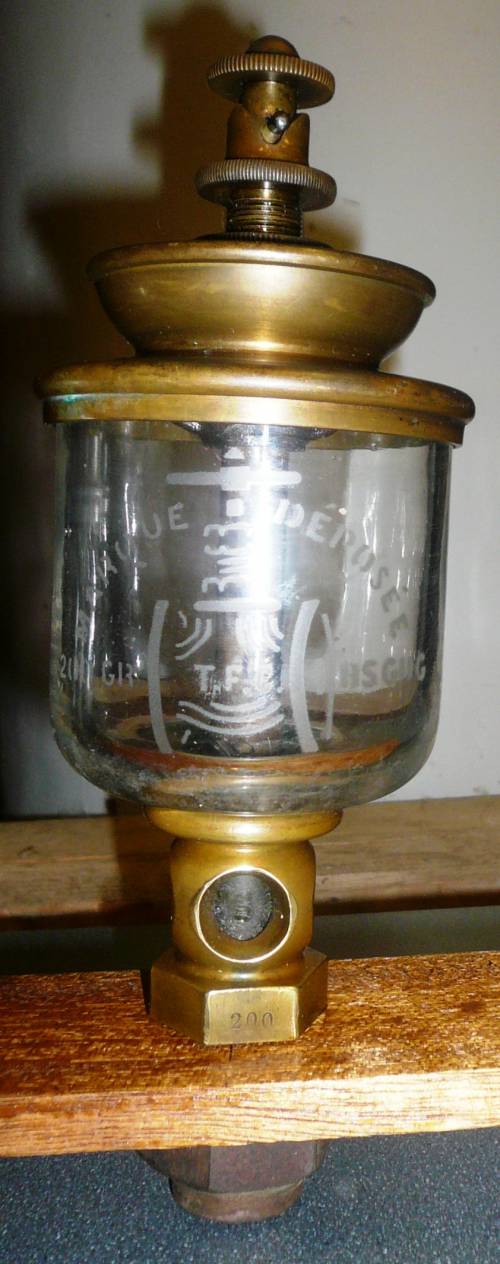 Goutte à goutte encore appelé “pleureuse” servant à lubrifier en continu les axes de transmission mettant en branle les métiers d’une usine.