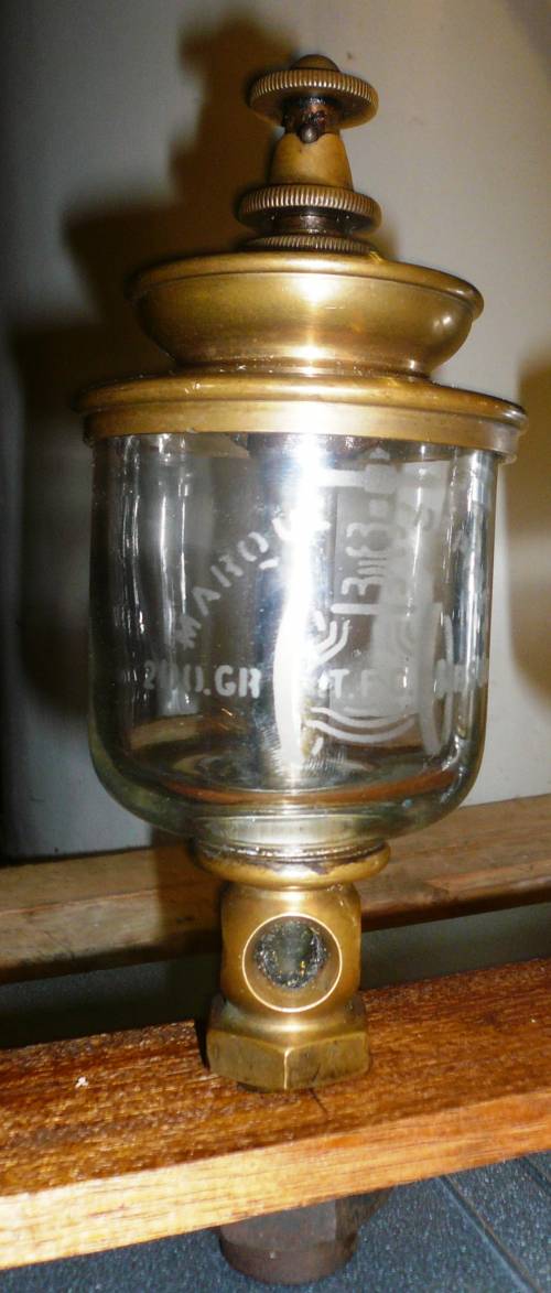 Goutte à goutte encore appelé “pleureuse” servant à lubrifier en continu les axes de transmission mettant en branle les métiers d’une usine.