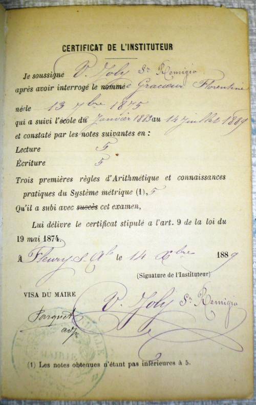 Livret de travail d’enfant avec certificat de l’instituteur, la loi de 1874 sur le travail des enfants et des filles mineures employés dans l’industrie et un feuillet manuscrit faisant état des prestations du possesseur du livret.