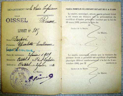 Livret de travail d’enfant avec instructions relatives à sa délivrance et deux feuillets faisant état des prestations de son possesseur.