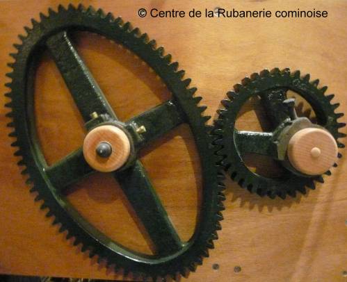 Les pignons de gauche (face au métier) donnent un accéléré à la navette tandis que les pignons de droite ralentissent l’ouverture des lames.