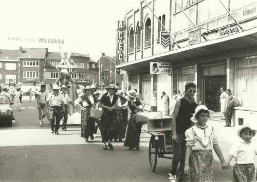 Photographie argentique en noir et blanc réalisée le dimanche 17 juillet 1983 à l’occasion de la première “Fête des Marmousets” dont l’origine remonte au Moyen Âge, au moment où les tisserands cominois célébraient sainte Anne, leur patronne.