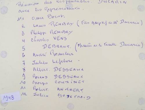 Au verso, des inscriptions manuscrites, réalisées au stylo à bille, renseignent sur plusieurs lignes : Réunion des responsables DUCARIN