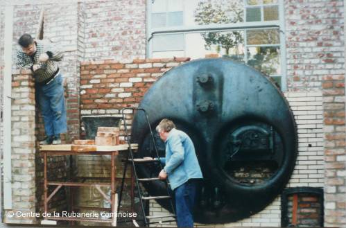 Arrivée au musée en octobre 1990 d’un nez de chaudière, récupéré dans les établissements “Lambin & Ravau” à Comines France.