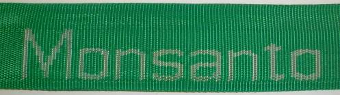 Ruban comportant, en vert et blanc, l’inscription : “Monsanto”.