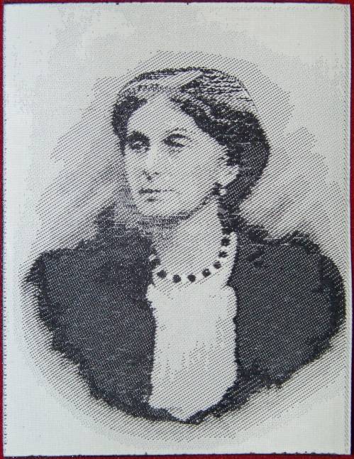 Ruban tissé au jacquard représentant madame Hélène Dalle-Duprez (1879-1949) en buste.