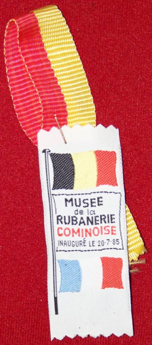 Il s’agit d’un ruban commémoratif de l’inauguration du Musée de la Rubanerie cominoise.