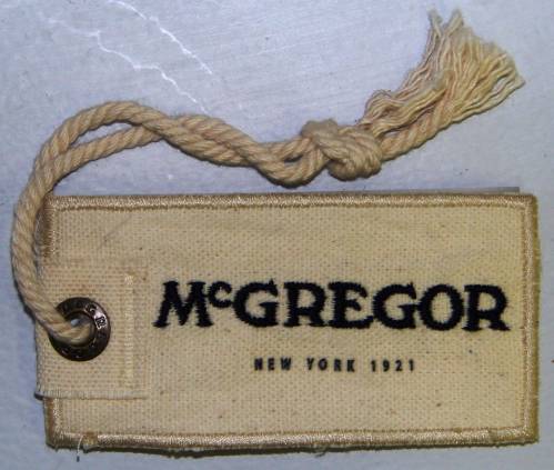 Ruban tissé au jacquard comportant, sur fond beige, les inscriptions : “Mc GREGOR; New York 1921”.