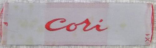 Rubna tissé au jacquard comportant, en rouge sur fond blanc, l’inscription “Cori”.
