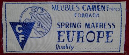Ruban tissé au jacquard en bleu sur fond blanc, portant, au coeur d’un ovale, la mention “Malatex”, ainsi que l’inscription “MARQUE DEPOSEE” dans sa ligne de circonférence basse.