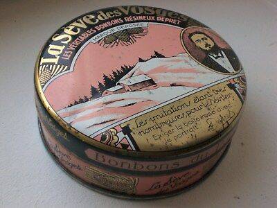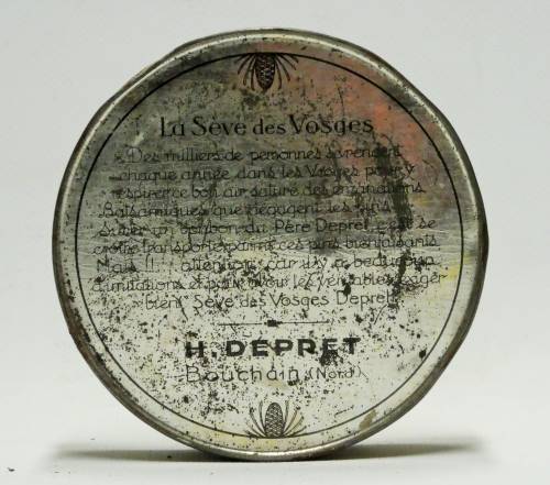 boîte ronde en métal peint avec le portrait du créateur Père Dépret