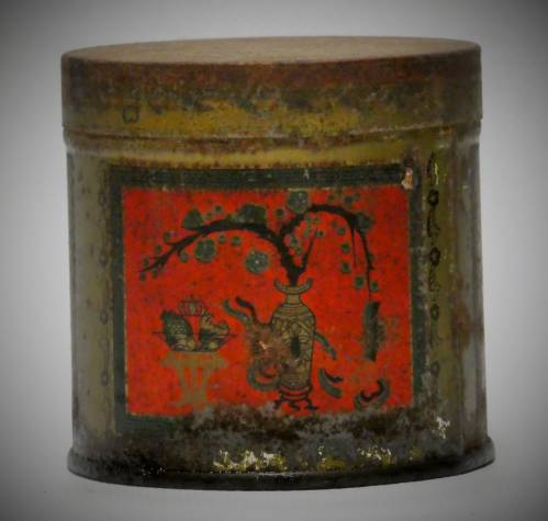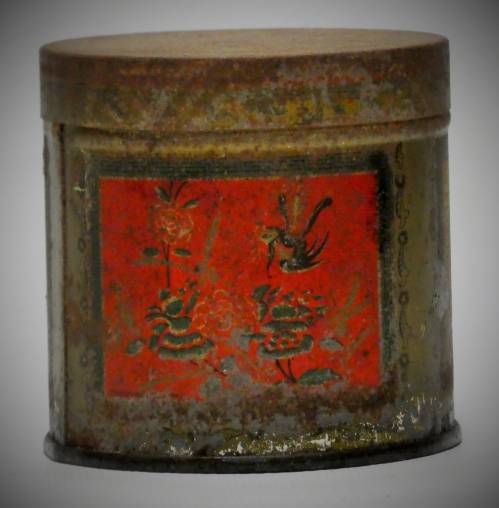 boite métallique ronde Ancienne boîte ronde tôle thé Vichnou Indien décor floral années 1910/20 Paris [Vu sur e-bay]