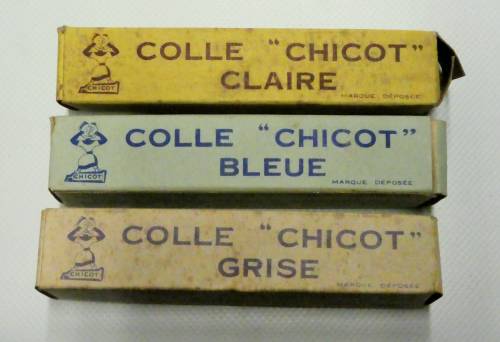 emballage carton contenant un tube de colle, différent colori : bleue,grise;claire