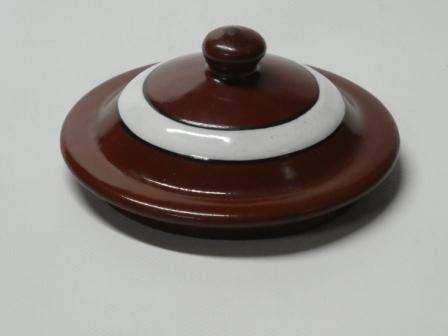 couvercle du beurrier couleur bordeaux avec liseré blanc