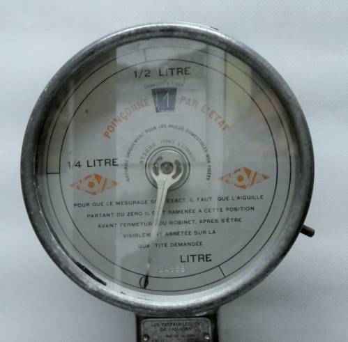 sur le cadran : pour que me mesurage soit exact il faut que l'aiguilleportant du zéro 0, soit ramenée à cette position avant fermeture du robinetn après s'être visiblement arrétée sur la quantité demandée