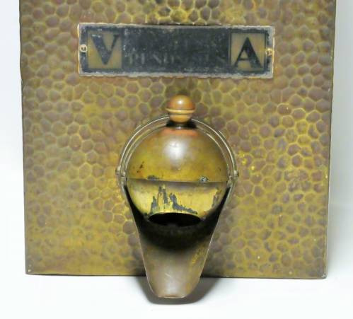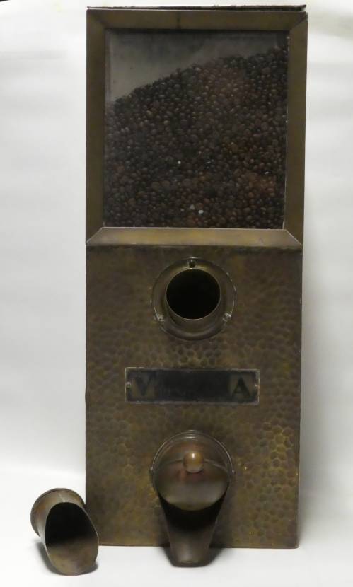 boite métallique vitrée en facade et métal martelé, bec verseur doseur et pelle pour prendre le café