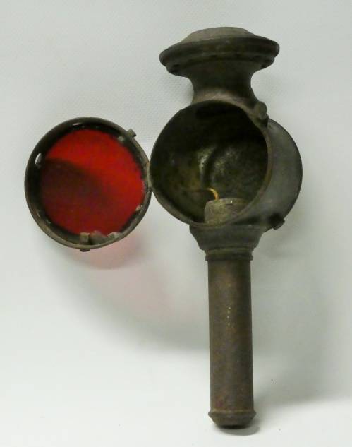 verre rouge et surmonté d'un chapeau pour l'évacuation des fumées