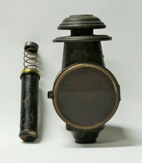 cylindre fermé d'un couvercle avec un verre rouge, cheminée pour l'évacuation des fumées